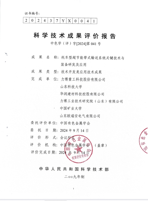 華潤建材科技“托車型超節能帶式輸送系統關鍵技術與裝備研發及應用” 項...